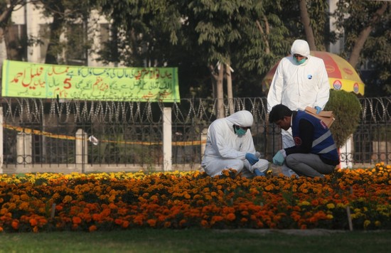 ومشطت شرطة لاهور موقع التفجير الانتحاري الذي وقع أمس الاثنين أثناء احتجاج للصيادلة ومصنعي الأدوية قرب المجلس الإقليمي.