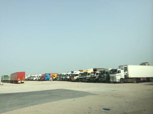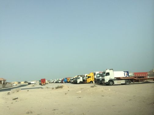 شاهد صور تكدس الشاحنات بالقرب من مدخل جسر الملك فهد باتجاه السعودية