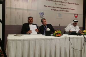 استقبل نائب رئيس مجلس الوزراء سمو الشيخ محمد بن مبارك آل خليفة في مكتبه بقصر القضيبية اليوم الأربعاء (6 مايو/ أيار 2015) كل من وزير التخطيط سلمان الجميلي ووزير العمل والشؤون الاجتماعية محمد شياع السوداني ووزير البيئة بجمهورية العراق قتيبة الجبوري وذلك بمناسبة مشاركتهم بأعمال الدورة الثانية للمنتدى العربي حول التنمية المستدامة الذي تستضيفه مملكة البحرين بحضور السفير العراقي لدى مملكة البحرين أحمد الدليمي .