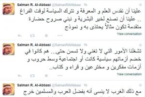 قال مسئول رصد خطابات الكراهية في مرصد البحرين لحقوق الإنسان الشيخ ميثم السلمان، اليوم الأحد (2 أغسطس/ آب 2015) عبر حسابه في موقع التواصل الإجتماعي "تويتر"، "إن المسئولية الوطنية تدعونا للمطالبة بتعريز المواطنة المتساوية(...) ومكافحة كافة ألوان التمييز ونبذ العنف والتطرف في البحرين، وإن إطلاق المنابر الإعلامية والدينية للنعوت الإزدرائية على طائفة أدى إلى استشراء العداء في البحرين، ومن عادى مواطنا سنياً لتسننه أوشيعيا لتشيعه فقد أقر على نفسه بفقدان شرط المواطنة الصالحة وهو التعايش المدني المشترك وقبول التنوع في البحرين.