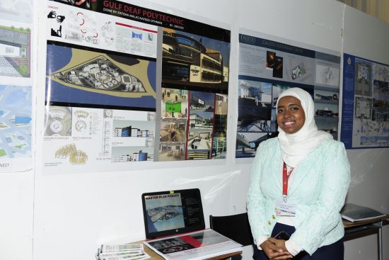 وتابعت قائلة: "من هنا ارتأيت أن يكون مشروعي للتخرج في بكالوريوس العمارة تصميم بوليتكنك الصم الخليجية التي تهدف إلى استقبال ألفي طالب غالبيتهم من فئة الصم، بالإضافة إلى نسبة 10% من الأصحاء على أن يكون هدفهم القيام بدراسات تتعلق بالصم والبكم".