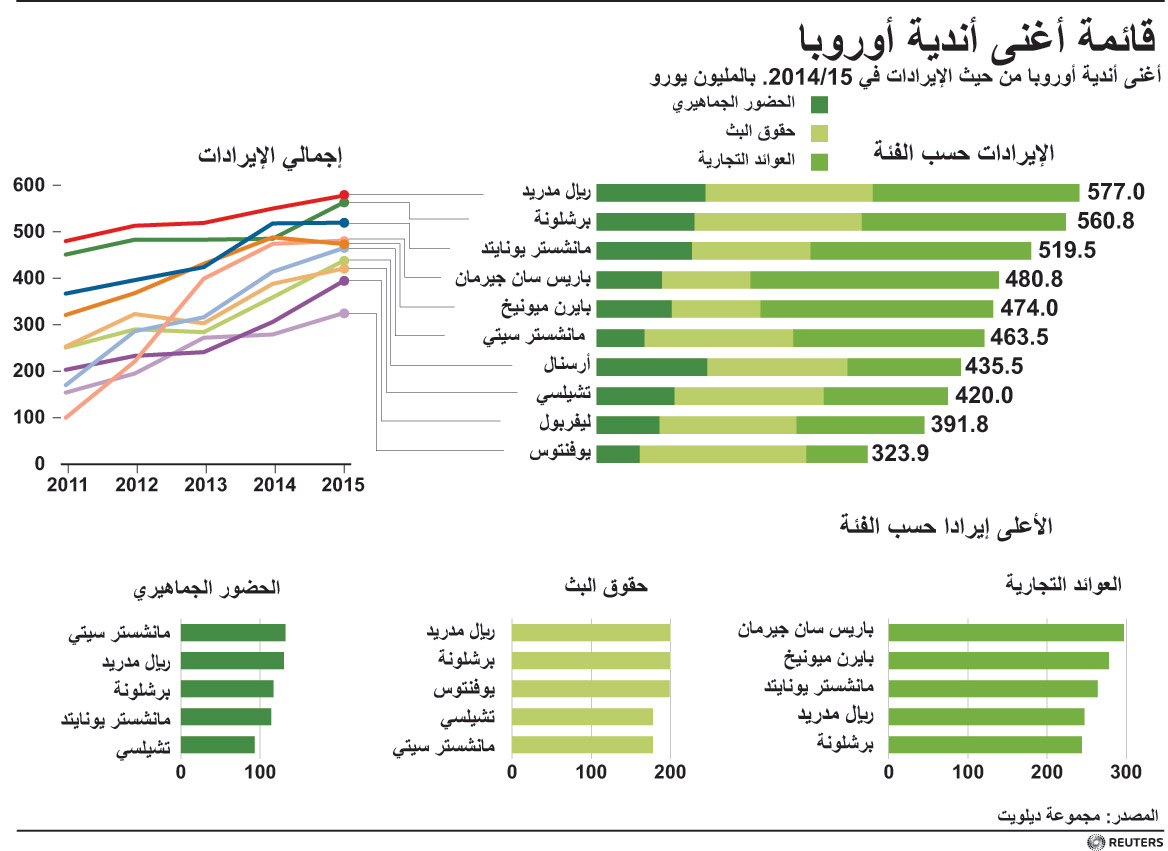انفوجرافيك... قائمة أغنى أندية أوروبا