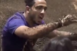 والقت جماهير الفريقين الألعاب النارية داخل الملعب قبل أن تحدث اشتباكات بين الجماهير داخل وخارج الملعب.