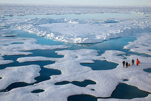 أظهرت دراسة نشرت نتائجها مجلة \"نيتشر كلايمت تشاينج\" أن تراجع مساحة الكتل الجليدية الطافية خلال الصيف متصل بنسبة (30 في المئة إلى 50 في المئة) بتغير العوامل الطبيعية في ...
