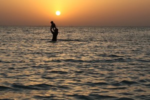 بالصور...أطفال يلعبون على ساحل البديع وسط ارتفاع درجة الحرارة