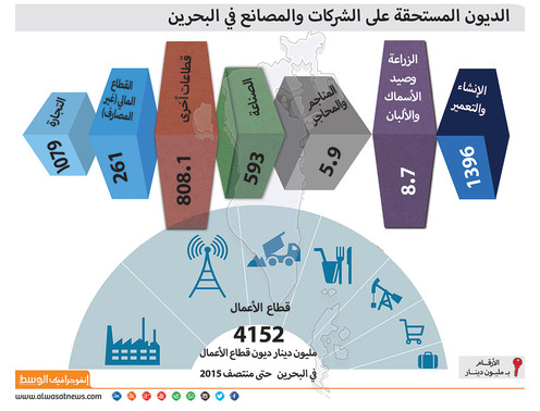 انفوجرافيك "الوسط"... الديون المستحقة على الشركات والمصانع في البحرين