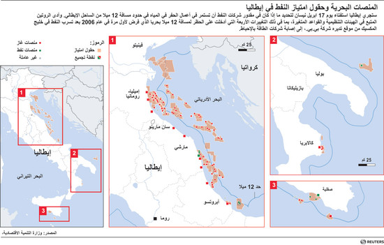 انفوجرافيك... المنصات البحرية وحقول امتياز النفط في إيطاليا