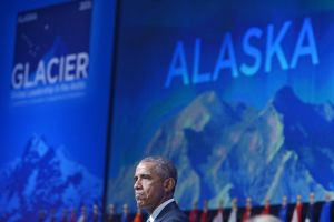 والرئيس الأمريكي باراك أوباما هو أول رئيس أمريكي يزور المنطقة القطبية في ألاسكا .