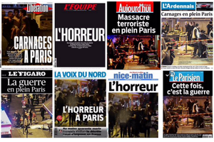 وأعلن الرئيس الروسي فلاديمير بوتين في برقية إلى نظيره الفرنسي فرنسوا هولاند نشرت على موقع الكرملين الالكتروني "أن هذه المأساة هي شهادة جديدة على طبيعة الإرهاب الوحشية التي تطرح تحدياً على الحضارة البشرية. من الواضح أن مكافحة هذه الآفة بفاعلية تتطلب من الأسرة الدولية توحيد جهودها بصورة فعلية".