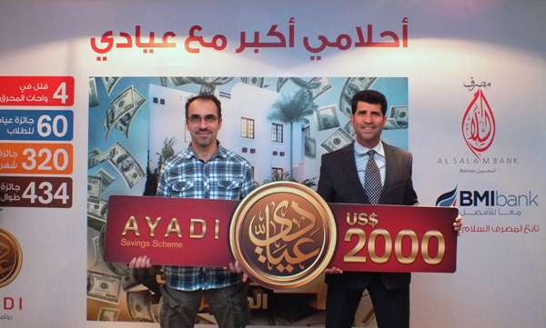أعلن مصرف السلام-البحرين، احد المصارف الإسلامية الرائدة في مملكة البحرين، عن أسماء الفائزين الـ45 لشهر نوفمبر/ تشرين الثاني 2015 من برنامج عيادي للتوفير بجوائز نقدية يصل مجموعها إلى 24 ألف دولار أميركي حيث فاز محمد عماد محمد بالجائزة الأولى بقيمة ألفي دولار إلى جانب فوز 39 فائزاً بجائزة نقدية قدرها 500 دولار لكل منهم.