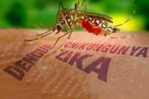 وينتقل الفيروس زيكا بلسع بعوض يسمى "البعوض النمر". وهو يتسبب باعراض شبيهة بالانفلونزا (ارتفاع الحرارة ووجع في الراس والم في المفاصل) لكنه يمكن ان يؤدي لدى الحامل الى تشوه خلقي لدى الجنين الذي يمكن ان يولد بجمجمة أصغر من الحجم الطبيعي وهو ما يعرف بصغر الراس.