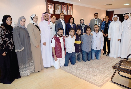 استقبلت وزيرة الصحة فائقة سعيد الصالح بمكتبها فريق «التمريض» الفائز بالمركز الثاني في بطولة سداسيات كرة القدم العشبية بمهرجان يلا رياضة، وذلك بحضور الوكيل المساعد للموارد البشرية والخدمات فاطمة عبدالواحد، ومدير إدارة العلاقات العامة والدولية أنيسة الحويحي، ونائب رئيس التمريض بمجمع السلمانية الطبي سلمان جاسم، ورئيس وعدد من موظفي قسم شئون المجتمع بإدارة العلاقات العامة والدولية.