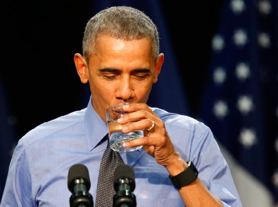 احتسى الرئيس الأميركي باراك أوباما مياهاً مرشحة في مدينة فلينت بولاية ميشيغان وطمأن السكان الغاضبين بأن أطفالهم ليسوا في خطر رغم «الإخفاق التام» الذي تسبب في تلويث مياه الشرب في مدينتهم بالرصاص.