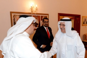 استقبل القائد العام لقوة دفاع البحرين المشير الركن الشيخ خليفة بن أحمد آل خليفة في مكتبه أمس الثلثاء (17 مايو/ أيار 2016) الملحق العسكري بسفارة دولة الكويت الشقيقة لدى البحرين اللواء الركن علي سليمان العساكر، حيث قدم له قائد قوة الواجب المشترك (CTF 152) العقيد الركن بحري نايف خالد العسكر.