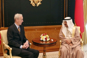 وأشارت إلى أنه «التقى في البحرين عاهل البلاد جلالة الملك حمد بن عيسى آل خليفة، وكذلك وزير الخارجية الشيخ خالد بن أحمد بن محمد آل خليفة، ورحّب بالالتزام بمواصلة الإصلاح».