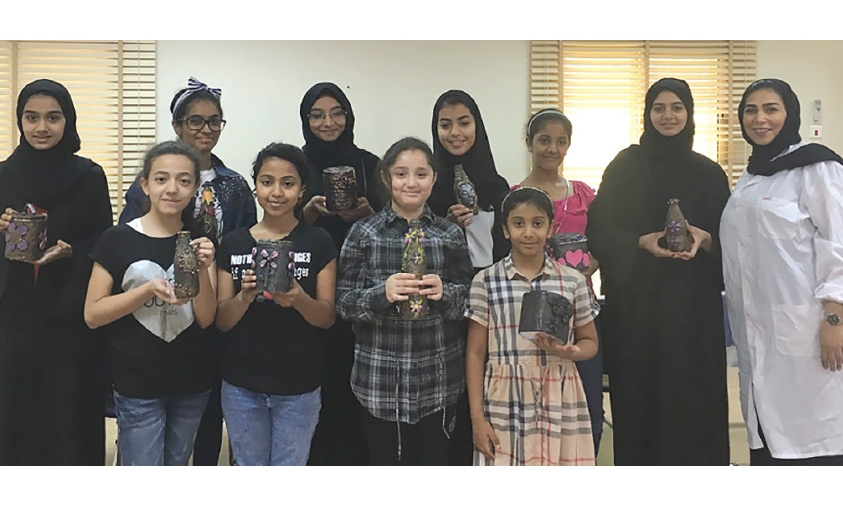 نظم قسم الأنشطة الفنية بإدارة الخدمات الطلابية بوزارة التربية والتعليم وورشة عمل بعنوان «التشكيل بالعجائن باستخدام الخامات المستهلكة»، قدمتها أخصائيتا الأنشطة المدرسية نجاة فزيع وشيرين آل سبيت لـ 22 طالبة من مختلف المراحل الدراسية وذلك بمركز الأنشطة الثقافية والفنية الكائن بالرفاع.