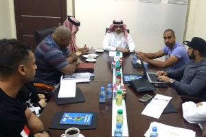وشهد الاجتماع حضور عبدالعزيز توفيقي ممثلاً عن الشركة، بالإضافة إلى مدير إدارة المنشآت والمشاريع صالح العثمان وهشام مختار كممثلين عن وزارة شئون الشباب والرياضة، وماجد العبوة ممثلاً عن الاتحاد الدولي لكرة القدم، بالإضافة إلى حضور الأمين العام لاتحاد الكرة حسن إسماعيل.
