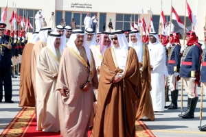 كما كان في الاستقبال عدد من المسئولين بالمملكة والأمين العام لمجلس التعاون وسفير دولة قطر الشقيقة لدى مملكة البحرين.