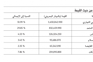 ذكرت إحصاءات رسمية، أن القيمة المضافة للصناعات التحويلية في الاقتصاد البحريني ارتفعت خلال التسعة شهور الأولى من العام 2016 إلى 1.47 مليار دينار، مقارنة بقيمة مضافة تبلغ 1.36 مليار دينار لنفس الفترة من العام 2015.