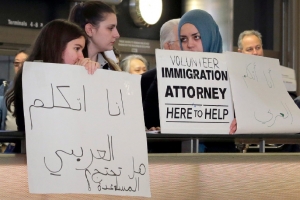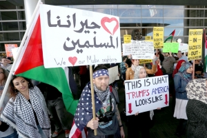 تظاهر أكثر من ألفي شخص يوم السبت الماضي قرب نادي الغولف الخاص بالرئيس الأميركي دونالد ترامب في ولاية فلوريدا احتجاجاً على المرسوم الذي أصدره بمنع الهجرة والسفر مؤقتاً من سبع دول ذات غالبية مسلمة إلى الولايات المتحدة.