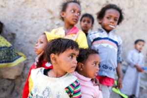 وتجمع عدد من المدنيين وبينهم صبية من القرى المجاورة وهم يرفعون رايات ويلوحون بها للقوات العراقية التي استعادت القرية.