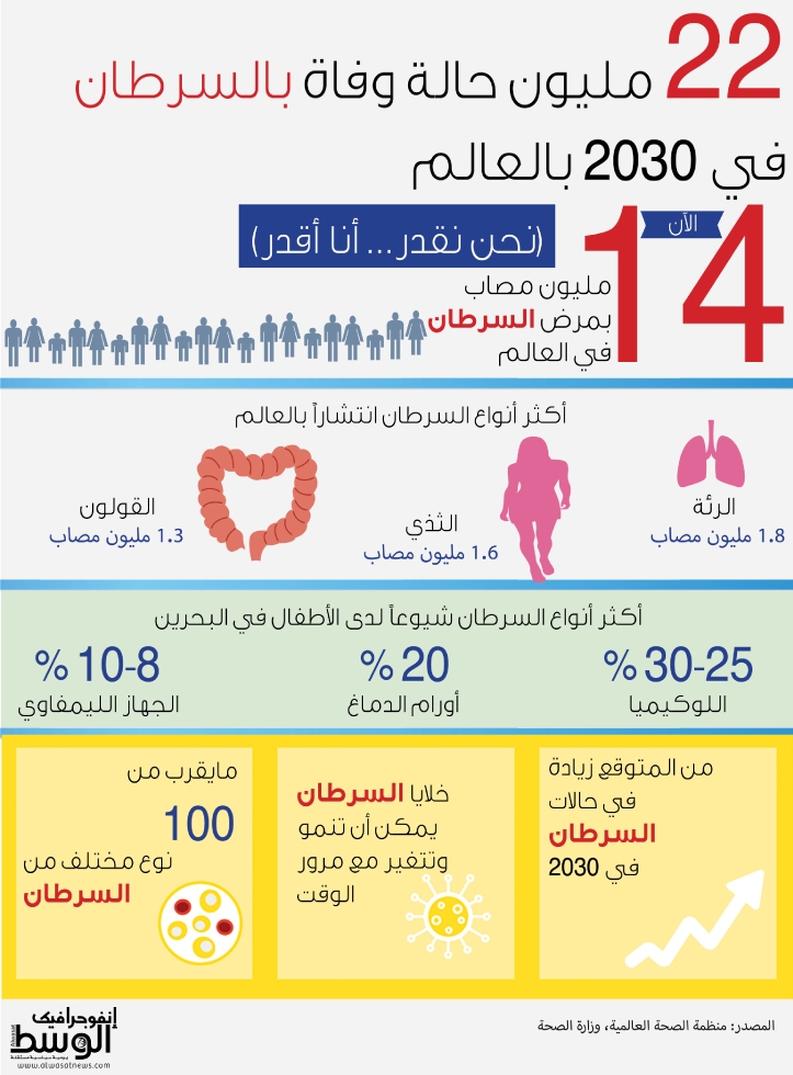 ففي كل سنة، يتم تسجيل 14 مليون حالة جديدة بالسرطان في العالم، وهذا الرقم مرشح للازدياد بنسبة 70 في المئة خلال السنوات العشرين المقبلة وفق منظمة الصحة العالمية.