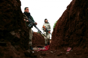 في حين كانت الدبابات وفرق الصواريخ تقف متأهبة عند السواتر ويتمركز الجنود المسلحون بقاذفات صاروخية على الأسطح.