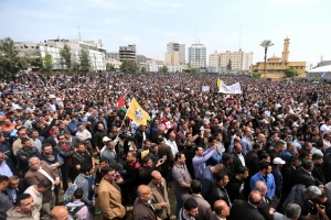 ونظم سوريون أمس (السبت) اعتصاماً أمام مقر الأمم المتحدة في دمشق، رافعين صور الأسد وشعارات «الموت لأميركا» و«سيناريو العراق لن يتكرر»، في إشارة إلى الغزو الأميركي للعراق العام 2003.