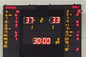 وبالعودة للمباراة، نرى أن بني جمرة كان الطرف الأفضل في الشوط الأول حتى دخول الشوط في نقاطه الأخيرة، وفيها نجح عالي في تحقيق نقاط متتالية قادته للتعديل وإدخال الشوط في سلسلة طويلة من التعادلات، حتى انتهى الشوط بنتيجة (36-34)، بعدما نجح علي حمزة بصعوبة بالهجوم من مركز (4)، ومن ثم تمكن حسين هرونة من اصطياد سيدعلي خلف.