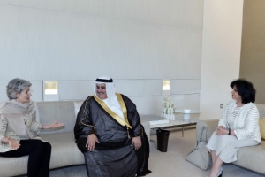 وكان صاحب السمو الملكي رئيس الوزراء قد استقبل بقصر الرفاع، أمس الخميس (18 مايو/ أيار 2017)، المديرة العامة لمنظمة الأمم المتحدة للتربية والثقافة والعلوم (اليونسكو) إيرينا بوكوفا، بمناسبة زيارتها إلى المملكة، حيث رحب سموه بالزيارة وما تجسده من شراكة قائمة بين مملكة البحرين ومنظمة «اليونسكو»، ولاسيما في مجالات التعليم والحفاظ على التراث الحضاري والإنساني.