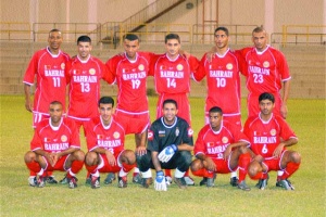 - رئيس منتخبي البحرين والاردن، وممثل الاتحاد البحريني لكرة القدم يقدمون باقات الورود إلى راعي الحفل .