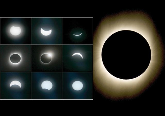 ثم ملأت أصوات عدسات التصوير الأجواء بينما ران الصمت المطبق على المراقبين رهبة وخشوعا وهم يلقون نظرة على هذا المشهد الفريد لكسوف كلي للشمس.