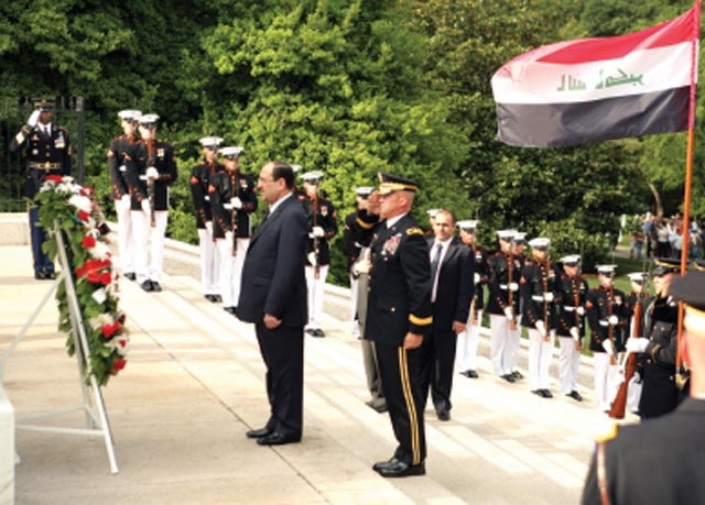 بحث رئيس الحكومة العراقية نوري المالكي الخميس في واشنطن البقاء المحتمل لقوات أميركية في بلاده بعد نهاية العام 2011، تاريخ الرحيل النهائي للجيش الأميركي عن العراق. وقال المالكي خلال كلمة ألقاها في «المعهد من أجل السلام» في واشنطن «طبقا للاتفاق (الموقع في نوفمبر/ تشرين الثاني بين البلدين) فإن الوجود الأميركي في العراق ينتهي العام 2011». وأضاف «مع ذلك، في حال تطلبت القوات العراقية المزيد من التأهيل والدعم، فسنبحث عندها (إمكانية إبقاء) جنود أميركيين طبقا لحاجات العراق».