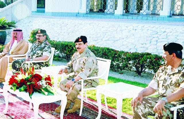 عقد حضرة صاحب الجلالة الملك حمد بن عيسى آل خليفة ملك البلاد القائد الاعلى لقوة الدفاع اجتماعا عصر أمس بالقائد العام لقوة الدفاع صاحب السمو الشيخ سلمان بن حمد آل خليفة ولي العهد والفريق أول وزير الدفاع الشيخ خليفة بن أحمد آل خليفة، واللواء ركن رئيس هيئة الأركان الشيخ راشد بن عبدالله آل خليفة وعدد من كبار ضباط قوة الدفاع، أطلعهم فيه جلالته على آخر التطورات والمستجدات الراهنة، على الساحتين الاقليمية والدولية، وذلك في ضوء الحوادث المتلاحقة التي تشهدها المنطقة خصوصا ما يتعلق بمستجدات الأزمة العراقية، وفي ضوء استنفاذ فرص السلام والجهود الدبلوماسية ما ينذر بنشوب الحرب، معربا جلالته عن أمله في تجنب المنطقة المواجهة العسكرية.