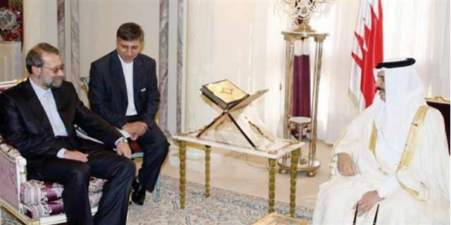 بحث وزير الخارجية الشيخ خالد بن أحمد آل خليفة مع رئيس مجلس الشورى الإيراني علي لاريجاني بمقر إقامته، القضايا الإقليمية والدولية، بما في ذلك الوضع في العراق، إذ أثنى الجانب الإيراني على الخطوات التي قامت بها المملكة والتي تكللت بزيارة وزير الخارجية للعراق وفتح سفارة في العراق وتعيين سفير في بغداد. فيما أشاد وزير الخارجية بالسياسة الإيرانية التي تفضل الخيار الدبلوماسي لحل الأزمات. وأكد الجانبان أهمية دعم الحكومة العراقية في خطواتها الرامية إلى إعادة إعمار العراق وتثبيت الأمن والاستقرار فيه.