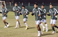 خاض منتخب باكستان الأولمبي يوم أمس أول حصصه التدريبية على الملاعب الخارجية بالاتحاد البحريني لكرة في توقيت تدريب منتخبنا نفسه ، وكان المنتخب الباكستاني وصل فجر أمس إلى المملكة، واستمر التدريب يوم أمس لمدة قاربت الساعتين بدأها مدرب باكستان محمد رشيد بعملية الإحماء والجانب البدني الذي لم يستمر طويلا بعدها عمد إلى تقسيم اللاعبين إلى مجموعات واللعب في مساحات صغيرة «مربعات»، واستكمل رشيد الحصة التدريبية بالجزء الفني الذي شهد التأكيد على خطة لقاء الغد والذي سيخوض بها الفريق مباراته، وكانت أبرز ملامح الخطة التي ظهرت في المناورة التدريبية التي لعبها المنتخب الباكستاني في منتصف الملعب هي اعتماد المدرب رشيد إلى إغلاق منطقة مرماه بأكبر عدد ممكن من اللاعبين من خلال تكثيف منطقة الوسط بخمسة لاعبين لتضييق المساحات أمام لاعبي منتخبنا ومن ثم الاعتماد على الكرات الطويلة إلى المهاجم الوحيد الذي سيكون في تشكيلته، وانتهت الحصة التدريبية بالتسديد على المرمى.