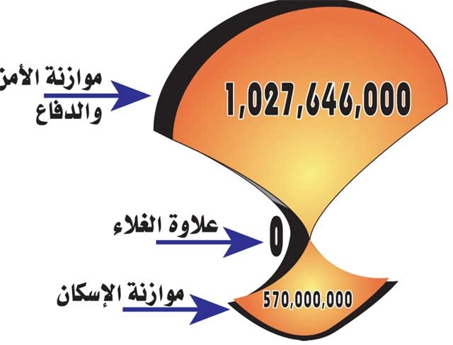 وكانت أرقام الموازنة بينت أن موازنة الأمن والدفاع بلغت (1.027.646.000 دينار) بنسبة بلغت 24.68 في المئة من مجموع موازنة الدولة، أي بزيادة مقدارها(216.629.000 دينار) عن موازنة العامين 2007 - 2008، وبذلك تكون نسبة الزيادة 21.1 في المئة.