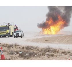 أكد مدير إدارة الدفاع المدني والإطفاء العميد خالد العبسي الذي كان موجودا في موقع الحدث أن الإدارة فور تلقيها البلاغ سارعت فورا بالحضور إلى الموقع، وعاينته وقام عدد من رجال الإطفاء بعدة محاولات لإخماد الحريق، منها اتباع وسيلة الرغوة السائلة، وغيرها من الوسائل، إلا أن تلك الأساليب لم تكن تجدي نفعا في هذا الظرف، وهو وجود تسرب مستمر للغاز من فوهة البئر.