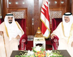 أشاد عاهل البلاد جلالة الملك حمد بن عيسى آل خليفة لدى لقائه في قصر الصافرية أمس رئيس هيئة البيعة في المملكة العربية السعودية الشقيقة الأمير مشعل بن عبدالعزيز آل سعود يرافقه نجله الأمير عبدالعزيز بما تشهده العلاقات الأخوية المتميزة والوطيدة التي تربط البلدين والشعبين الشقيقين، وما وصلت إليه هذه العلاقات من تعاون في المجالات كافة.