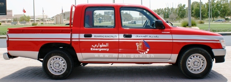 دشنت بلدية المحرق مركبات جديدة للطوارئ تعمل على مدار 24 ساعة طوال أيام الأسبوع، وذلك لتقديم خدمات للطوارئ من ناحية مراقبة المتنزهات والحدائق للحفاظ على نظافة الطرقات والشوارع في المحرق. ويعمل ضمن طاقم مركبة الطوارئ فني مختص بشئون النظافة، وآخر من قسم المتنزهات والحدائق.