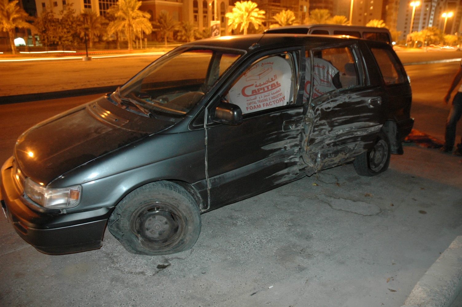 أصيب شاب آسيوي فجر اليوم (السبت) وذلك بعد أن اصطدمت سيارته بشجرة على شارع الفاتح بالقرب قبالة النادي البحري.