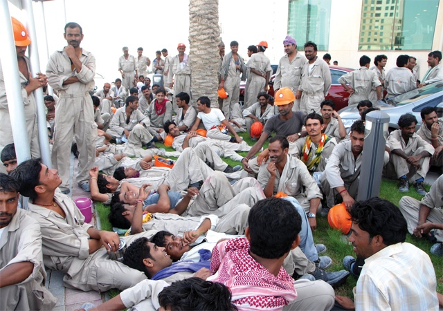 استمر مسلسل اعتصام العمالة الأجنبية لليوم الثاني على التوالي للمطالبة بصرف مستحقاتهم المالية المتأخرة، إذ تجمّع قرابة 350 عاملا آسيويا صباح أمس أمام هيئة تنظيم سوق العمل للمطالبة بصرف مستحقاتهم المالية من شركتهم التي لم تفِ بالتزاماتها اتجاههم، وذلك بعد إضراب عن العمل دام خمسة أيام.