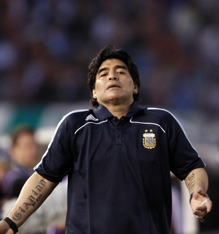 وانتقد مارادونا بشدة وسائل الإعلام الارجنتينية التي شككت بقدرته على قيادة المنتخب الوطني إلى نهائيات كأس العالم 2010، وصدرت عنه اهانات من العيار الثقيل بعدما نجح منتخبه في حسم بطاقته إلى نهائيات جنوب افريقيا 2010.