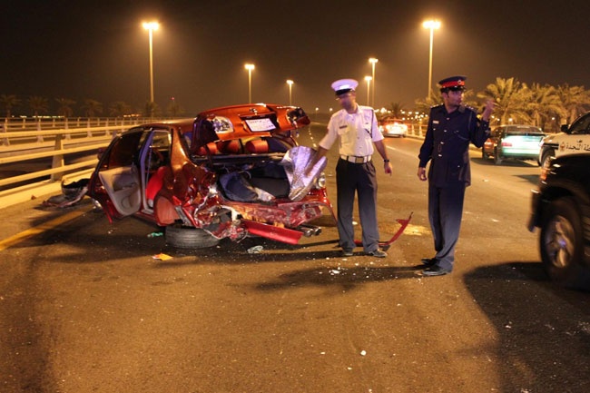أصيب ثلاثة بحرينيين تتراوح أعمارهم ما بين 20 و 30 فجر اليوم (الجمعة) بإصابات تراوحت بين البليغة والمتوسطة، وذلك اثر اصطدام مركبة يقودها شاب بحريني آخر بمركبتهم من الخلف ما أدى لالتفافها لترتطم بالسياج الحديدي لجسر مدينة حمد.