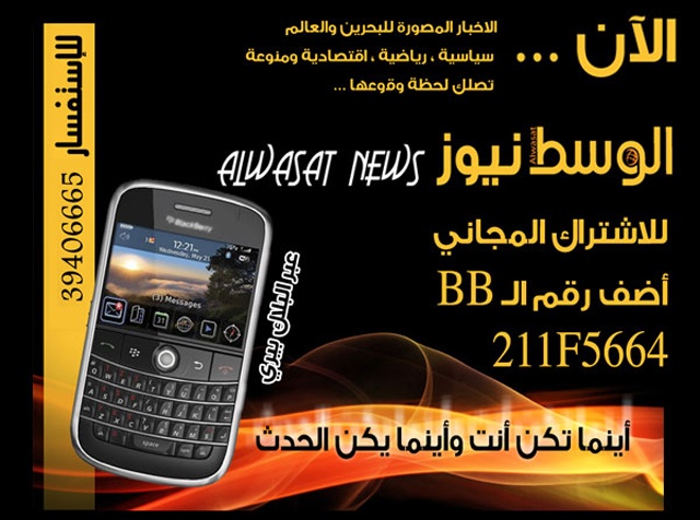 نشكر القائمين على صحيفة الشعب الأولى الوسط وعلى رأسهم الدكتور منصور الجمري على هذه الخدمة المتميزة .. بس للأسف انا ما عندي BB عشان استفيد من هالخدمة ..