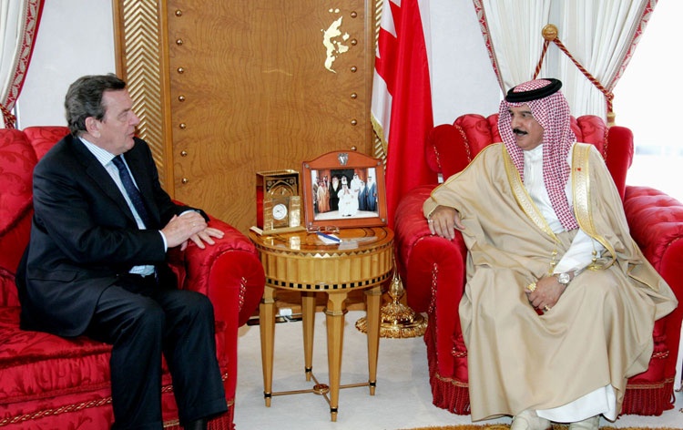 استقبل عاهل البلاد جلالة الملك حمد بن عيسى آل خليفة اليوم (الأربعاء) المستشار الألماني السابق غيرهارد شرويدر الذي يزور البلاد حاليا بدعوة من جلالة الملك على رأس وفد من رجال المال والاقتصاد وممثلي الشركات الصناعية والتجارية الألمانية.