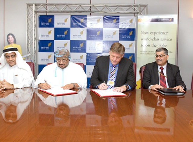 وقعت طيران الخليج، الناقلة الوطنية لمملكة البحرين، اتفاقية للرمز المشترك مع الناقلة الدولية الأولى في الهند جيت إيرويز لتعزيز خدمات النقل بين البلدين. وسيبدأ العمل بالاتفاقية اعتبارا من 12 أبريل/ نيسان 2010، إذ قامت إدارة الناقلتين بتوقيع الاتفاقية اليوم.