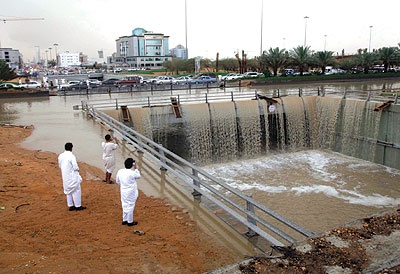 أعلنت العاصمة السعودية يوم أمس حالة الطوارئ إثر تعرضها لأمطار غزيرة، تسببت في عدد من الحوادث على الطرقات، واحتجاز عشرات المركبات، بسبب كميات المياه الكبيرة التي خلفتها الأمطار. وسبقت الأمطار، التي غمرت العاصمة الرياض، عاصفة رملية تسببت في سقوط الأشجار، وأحد أعمدة الإنارة على الطريق الدائري الشرقي، أحد أهم الطرق الرئيسية في العاصمة.