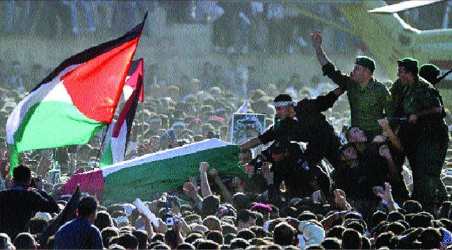 اتهم رئيس المكتب السياسي لحركة «حماس» خالد مشعل في بيروت «اسرائيل» بتسميم الرئيس الفلسطيني، مشيرا إلى أن ما حدث له هو قضية قتل صهيونية متعمدة. وأكد مشعل أن رحيل الزعيم عرفات يمثل خسارة كبيرة للشعب الفلسطيني، وقال انه شخص عزيز علينا وان رحيله خسارة لنا جميعا، مؤكدا أن مسيرة الشعب ستتواصل وأن رحيل الزعماء الكبار مثل عرفات سيزيد الشعب الفلسطيني إصرارا على تحقيق الحرية والاستقلال.