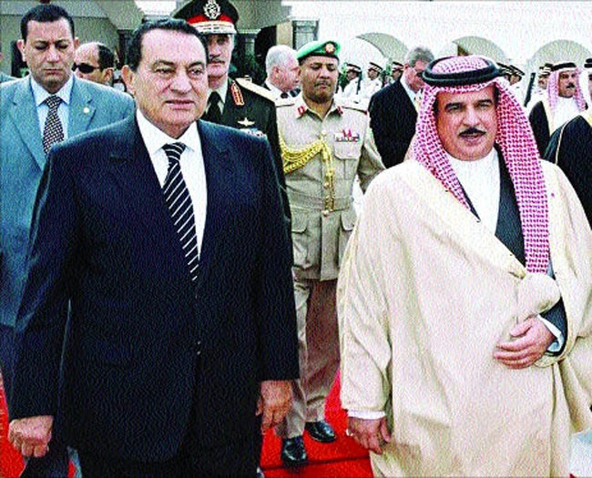 كان عاهل البلاد المفدى حضرة صاحب الجلالة الملك حمد بن عيسى آل خليفة في مقدمة مودعي رئيس جمهورية مصر العربية الشقيقة محمد حسني مبارك لدى مغادرته البلاد أمس والوفد المرافق بعد زيارة أخوية أجرى خلالها مباحثات مع جلالته تناولت العلاقات الأخوية المميزة وسبل تعزيزها وتطويرها في مختلف المجالات. كما تناولت التطورات الراهنة خليجياً وعربياً ودولياً إضافة إلى المساعي المبذولة لتعزيز العمل العربي المشترك والقضايا موضع اهتمام البلدين. كما كان في الوداع رئيس الوزراء صاحب السمو الشيخ خليفة بن سلمان آل خليفة وكبار أفراد العائلة وعدد من الوزراء والمسئولين في المملكة ومحافظ المحرق وسفير جمهورية مصر العربية لدى المملكة وأعضاء السفارة المصرية.